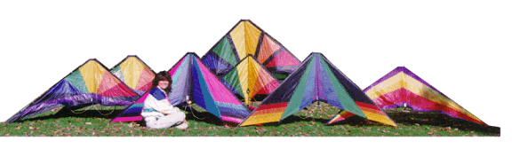 ![]() Annie with our stable of Top of the Line stunt kites. We not only sell them, we enjoy flying them too! |