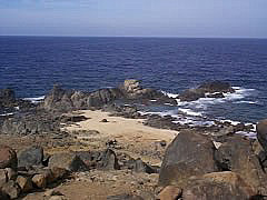 Another of Aruba's highlights is its wild side, the northern coast. The north side of the island is virtually uninhabited except by goats and a few donkeys that roam free on the island. Roads in many places are nonexistent and when you can find one it's often a challenge to negotiate it. There have been times when we have placed rocks in gullies so that the car could cross without getting stuck. Yes, 4 wheel drive vehicles are plentiful, but what fun is that? Another avenue would be to take an excursion on a 4 wheel all terrain vehicle as we did. It's an experience and one you won't soon forget. | ![]() |