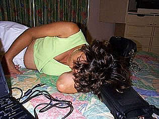 ![]() Anne practicing for a good final night's sleep. |