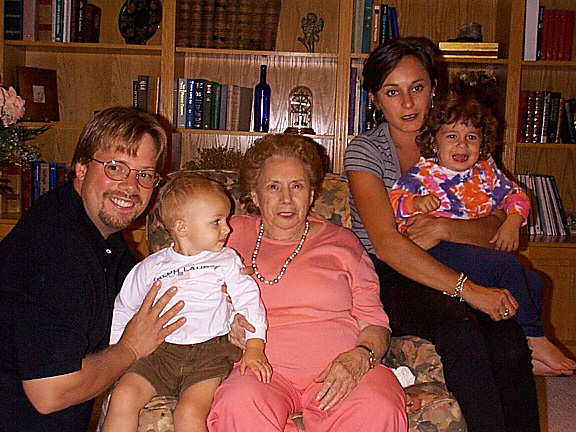 Evelyn with two of her three grandchildren, Scott and Jeannette, and her two youngest great-grandchildren, Niko and Alyssa. |