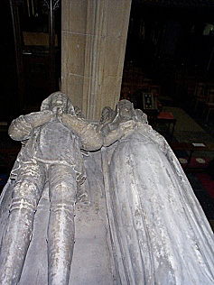 on top are the sculptured figures of Robert and his wife. A Greyhound