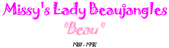 Beau lived until July 1992. She died from a restricted airway, a problem that some Pugs suffer from because of their flattened muzzle. She was almost 11 when she died, the longest that we'd ever had a Pug. Sadly her sister, Chrisy, died within a month of Beau and they were buried together along with their Mother Missy and Puggy.