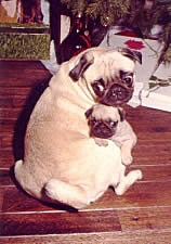 Just after she turned six months old I came home from work one day, sat on the floor and called her. I waited for her to run and jump into my lap. I noticed immediately something was wrong. She didn't run to me as she always did and, after a few seconds, she fell over on her side. Apparently she suffered some form of seizure. She appeared to recover within a minute or two, but I knew something serious was wrong. I immediately made arrangements to take her to the Animal Medical Center in New York, the best animal hospital in the area, for an examination and evaluation. I took the next day off from work and we went to the hospital. After the examination we were somewhat uplifted by what the doctor said. We were told that she probably had a defect in where the brain stem turns into the spinal cord, but that she would be able to live a normal life without much difficulty. We were advised if the seizures continued to contact the hospital and they would do more test. Those words were a great relief, but they were wrong. Soon after we arrived home with Tu Tu from the hospital she suffered another seizure. I immediately called the hospital and made arrangements to take her in for the more thorough examination. We dropped her off that evening and returned home. The next day we received a call that Tu Tu had died from a seizure, devastating news for us all. Anne and I returned to the hospital and brought her home to be buried in our back yard with Puggie our first Pug.