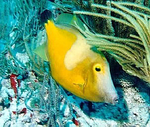 | Diving in Aruba: When we first went to Aruba diving was not the popular sport it is now. Dive shops were few and far between. When I approached one to inquire about my getting certified in the week's time we had, I was told it was impossible. With the growth of the sport in the late 80's and early 90's diving has taken off in Aruba and dive shops are plentiful today. Most hotels have a dive program sponsored by their own dive shop or through an affiliation with a local dive shop. Boat dives: Many of the best dive sites can only be reached by boat. The surf is always choppy so be prepared for it. And, please, if you begin to feel a bit sick to your tummy ... DON'T share the news with the rest of the people on board. It's amazing how everyone is just fine until that one person announces they aren't feeling well. That announcement makes everyone feel bad, so, please, keep your mouth shut. Be sure to visit the Airplanes, The Antilla, Jeanne C., and tug boats. There are also several good places where you can do drift dives. Shore dives: There are several good shore dives you can enjoy, among them, Baby Beach, Rocky Beach, and Mango Halto. Entry can be somewhat difficult on some dives because of a rocky bottom so make sure you have booties. Be aware of the currents for your dive site as they can at times run pretty strong. Now, let's look at some underwater pictures taken in Aruba's waters. |