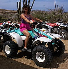 Another of Aruba's highlights is its wild side, the northern coast. The north side of the island is virtually uninhabited except by goats and a few donkeys that roam free on the island. Roads in many places are nonexistent and when you can find one it's often a challenge to negotiate it. There have been times when we have placed rocks in gullies so that the car could cross without getting stuck. Yes, 4 wheel drive vehicles are plentiful, but what fun is that? Another avenue would be to take an excursion on a 4 wheel all terrain vehicle as we did. It's an experience and one you won't soon forget. | ![]() |