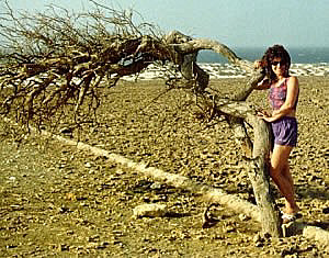 Anne standing next to a Divi Divi tree. Aruba is known for its Divi Divi trees. Most that you see will appear as this one does ... dead! It's hard to tell if they are dead or alive, but most do not have green leaves as you expect. They have several nice ones which they use in the commercials you see on TV. The spot where the commercial was taken is not far from a beautiful beach, but the sand appearing around these trees in the commercial was imported to the location to make it look better. |