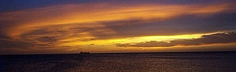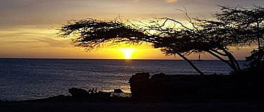 | One of the most beautiful things about Aruba is its beaches. The hotels are located on a beautiful white sand beach that stretches over 7 miles from the edge of Oranjestead to the western most point of the island. Virtually any kind of water sports can be enjoyed, but Aruba is known for its wind surfing. Aruba hosts a major international wind surfing competition annually which draws contestants from around the world. Naturally, when you put a beautiful beach under a magnificent setting Sun you get an unforgettable picture. Aruba's sunsets are wonderful. Mind you, not all are as perfect as the one at right, but you won't be disappointed. One of our annual activities is to buy several kilos of prawns, steam them and head off to the beach with a couple bottles of wine to enjoy the setting Sun. Tell me ... what could be better than sitting on the beach with your honey, enjoying a wonderful shrimp cocktail, a cool glass of wine and watching the Sun disappear below the horizon? Not much! |