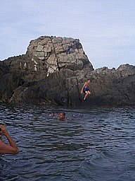 | Located on the north side of the island and accessible by 4-wheel vehicles and horseback is the Natural Pool. It's in a beautiful setting against the ocean's deep blue sea. It's not very large, but it offers a few minutes refreshment when traveling on the hot north side of the island. Many tropical fish can be found in its waters and the kids will enjoy climbing the rocks and jumping into the water. | ![]() |