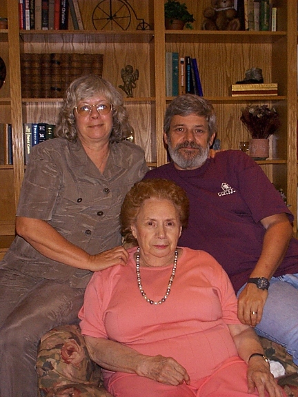 | Evelyn on her 80th birthday August 23, 1999 with her children Carol Paige and Artie |