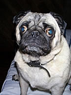 Now that you've heard Padi's side of the story it's time for me to take over and fill you in on what this little critter is really like. He's definitely a character, not unlike the other Pugs we've loved over the years, he has his own personality. I'm happy to report it's a wonderful one. If the truth be known Pugs are one of the best and friendliest breeds. In my twenty + year association with them I have never known one to exhibit any hint of a temperamental or mean streak. They shower any and everyone with affection and kisses. They hardly ever bark and rarely growl. In fact I intentionally taught one to growl at me when I tried to take away a bone. She learned to growl as expected but never attempted to follow through with what the growl should have meant. Pugs are wonderful pets and Padi is no exception. He is a joy to know and love.