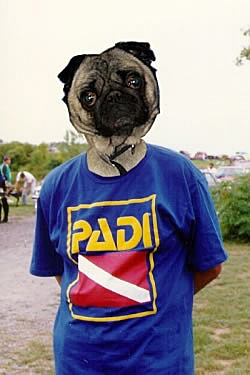 The only thing crazy about joining this family is that they're not the best at naming their children. Take my name for example, Padi. Bet you'd never guess where that came from? No, it's not Irish, but I do get the brunt of Irish jokes like people calling me "Padi O'Pug." That just makes me shiver! I was named after a sport that my new Mother and Father enjoy ... scuba diving. Padi is the acronym for Professional Association of Diving Instructors. Huh! How do you like that for a moniker? But, what can you expect from people who named their first dog, a French Poodle, Frenchie and their first Pug, Puggie? I guess it ain't so bad. It is unique!
