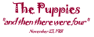 Then, on the afternoon of November 23, 1981, I returned home to pack for a short business trip to Chicago. When I entered the house and inquired of Anne where Missy was she informed me that she was sleeping in. I went upstairs to the bedroom to pack and Missy was indeed curled up on Anne's pillow sleeping. I took a quick shower and when I returned to the bedroom I almost fell over. Missy was cleaning her first born puppy. I quickly got on the phone to the vet to find out what we should do. She informed us to just sit back and wait for the others to arrive and to assist Missy with the cleaning after the puppies were born. |