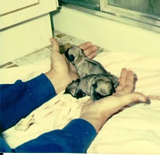 Within the hour the second puppy was born and some time later the third. Poor Missy was exhausted by the time the third puppy was born and it fell on me to clean the puppy and make sure it was breathing. These puppies were just a little larger than a good size mouse and totally helpless, but Missy kept a watchful eye out for them and immediately proved she would be a good Mother.