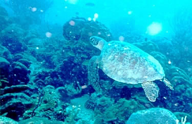 To cap off our dive at North Belhem Anne spotted a turtle and signaled to me. When I first saw him I was about 70' down and the turtle was swimming away from me at about 35'. Without thinking I started my pursuit of this gentle giant.